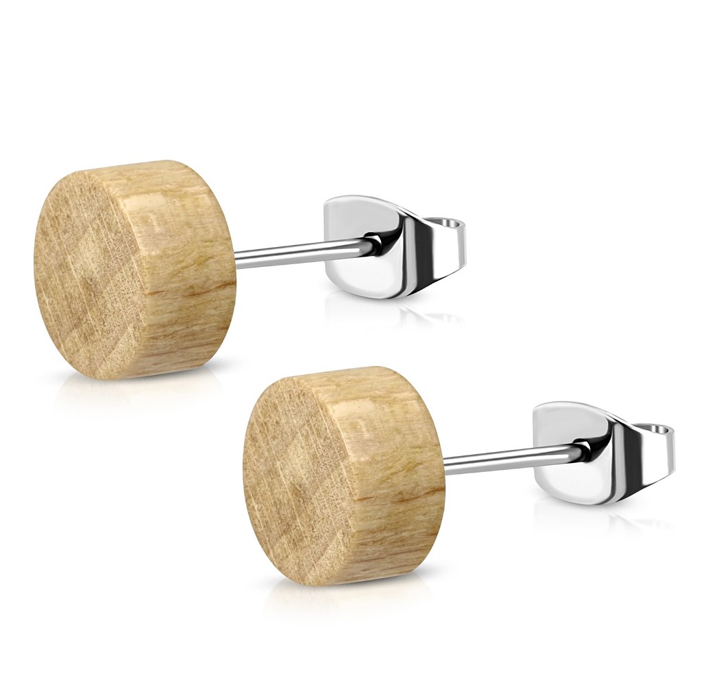 Náušnice z chirurgické oceli - dřevo